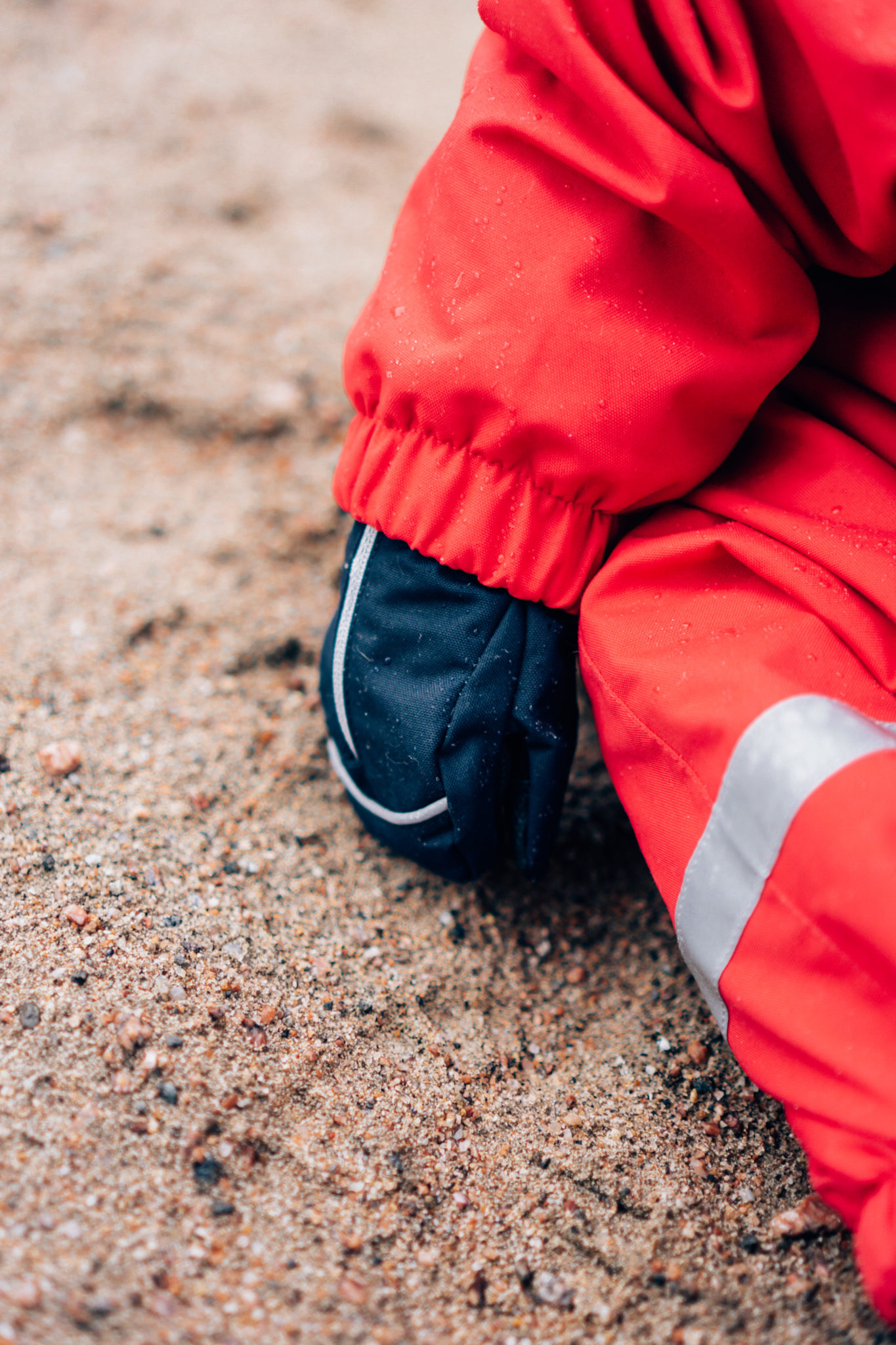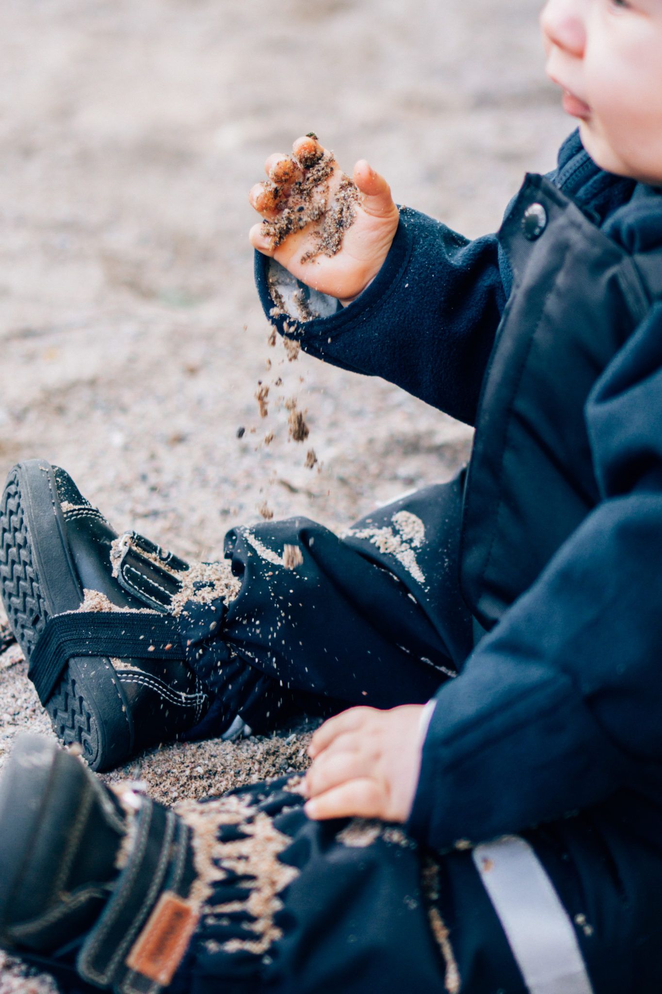 No itsehän mietin, että softshell vai windfleece? Makukysymys sanon minä. Windfleece tuntui jotenkin omaan makuun sopivammalta ja lämpimämmältä. Materiaaliltaan oli myös napakampi. Eli jos sulla on superliikkuvainen lapsi, suosittelen enemmän softshellin puoleen kääntymistä, jotta puku antaa enemmän joustoa liikkumiselle. Saaga tapittaa lähinnä paikallaan ja keskittyy hiekan syömiseen, kun hänet laskee istumaan, joten päädyttiin windfleece-haalariin.