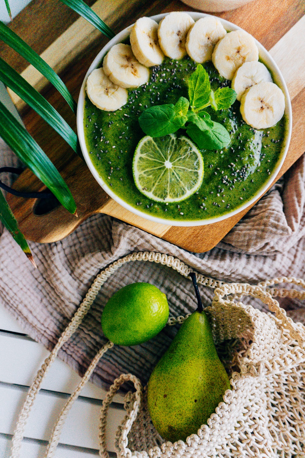- koristeeksi: mintun lehtiä, chian-siemeniä, banaani, lime viipale