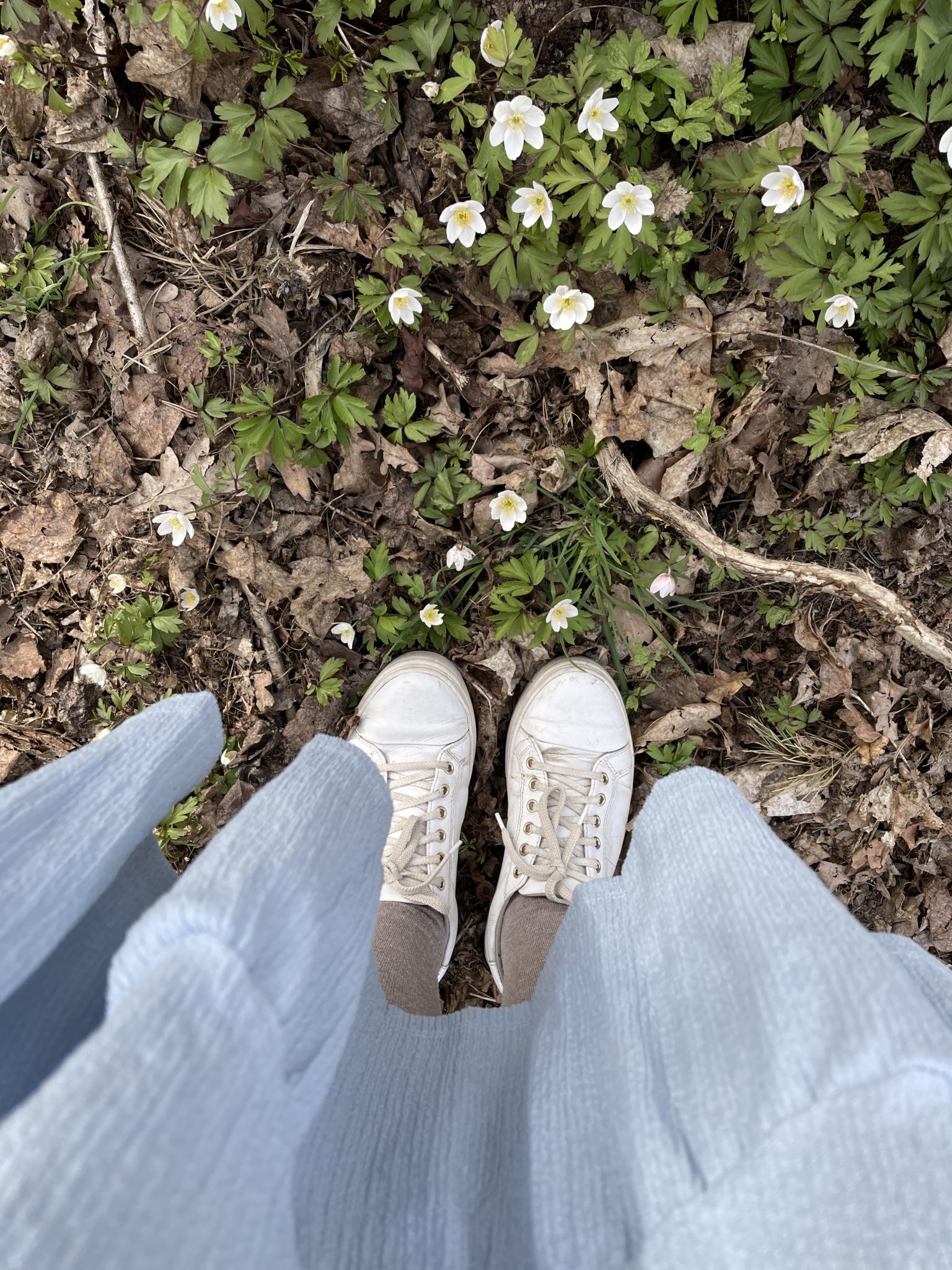 Valkovuokot on aina ollut mulle merkki äitienpäivästä. Poimittiin niitä mun siskon ja veljeni kanssa joka ikinen äitienpäivä äidille. Mä en ikinä muistanut äitienpäivän päivämäärää, mutta valkovuokoista aina tunnistin päivän olevan lähellä. Tänään näkyi taas paljon valkovuokkoja, kun käveltiin siirtolapuutarhoilla lenkkiä koko porukalla. Tuli taas sellainen herkistymisfiilis, kun äitini työnteli Saagan vaunuja ja valkovuokot reunusti tien varsia.