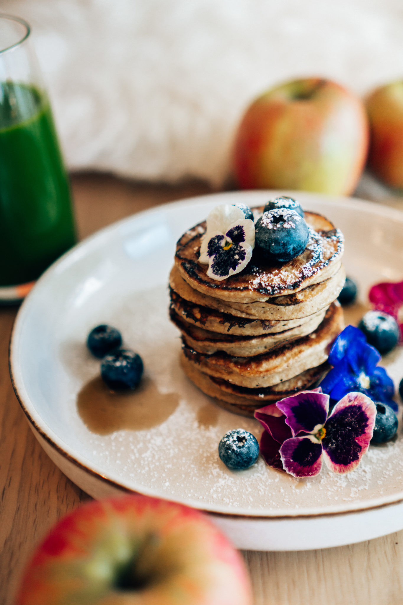 Meidän aamupalalautaselta löytyi eilen omenapannarit Saagan nimipäivän kunniaksi ja näistä tuli sen verran hyviä, että jaan reseptin nyt teillekin. Tein näistä gluteenittomia ja sokerittomia, mutta silti näistä tuli hyviä! Saaga osallistui myös näiden syömiseen tai oikeastaan joka toinen oli kiva heittää koiralle lattialle ja joka