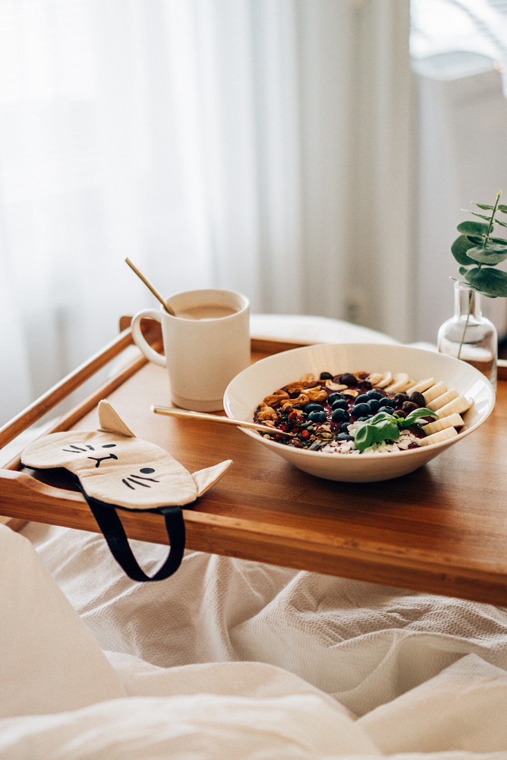 Me tehdään aamulla aina kahvit meidän DeLonghi Magnifica S kahvikoneella (josta en muuten suostuisi enää luopumaan). En ole oikein ikinä tykännyt pannukahvista ja tää tuo kyllä sen pienen luksuksen sinne arjen keskelle. Rakastan sitä maidonvaahdottimen ääntä aamusta, kun tulee ihan kahvilafiilis ☕. Näin kesällä olen innostunut tekemään aamupalaksi melkeinpä joka aamu smoothiebowlin. Teen joka aamu erilaisen, välillä ihan mehupohjaisen ja välillä proteiinipirtelöön. Päälle rakastan heittää kaikkea mitä kaapista löytyy ja nyt loppukesästä koitin myös tehdä ekaa kertaa omatekemää granolaa, josta tuli ihan super hyvää. Jaan varmasti syksymmällä tästä vielä reseptin tänne bloginkin puolelle. Toinen lemppari on ehdottomasti banaanipannarit. Niin paljon terveellisempiä, kuin tavalliset vehnäjauhoista ja rasvasta tehdyt aamuletut ja silti niin suussa sulavia! Tähän päälle heitän yleensä vaahterasiirappia ja tuoreita marjoja/banaania.