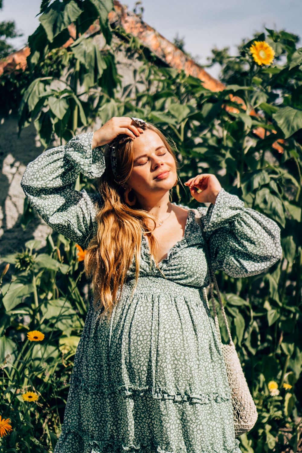 Seuraavaksi käyn tekemässä arkimeikin, jos olen johonkin lähdössä. Kotipäivinä en välttämättä jaksa alkaa meikkaamaan, mutta vähintään kulmakarvat ja ripset laitan kuntoon. Ihon olen nyt antanut hengitellä kesän yli ja meikkivoidetta ei juurikaan ole tullut laitettua. Tämän raskauden takia myös hikoilu on niin voimakasta ollut helteillä, että turhaan sitä meikkiä olisikaan tullut laitettua. ?☀ Jos meikkivoide jää laittamatta niin ainakin aurinkorasvaa tai kasvovettä, jossa on spf suoja on tullut laitettua. Raskauden takia myös iho palaa herkemmin, jonka takia aurinkorasva on saanut tänä kesänä ihan uudenlaisen merkityksen mun elämässä. Tämän jälkeen onkin aika haukata vähän raitista ilmaa ja lähdetään Tedin kanssa aamulenkille. Helteistä on kyllä saanut nauttia! En ole koko kesänä käyttänyt mitään muita vaatteita, kuin mekkoja, joka on ollut kyllä ihanaa! Alla olevassa kuvassa on yksi ehdottomasti mun tän kesän lempparimekoista.