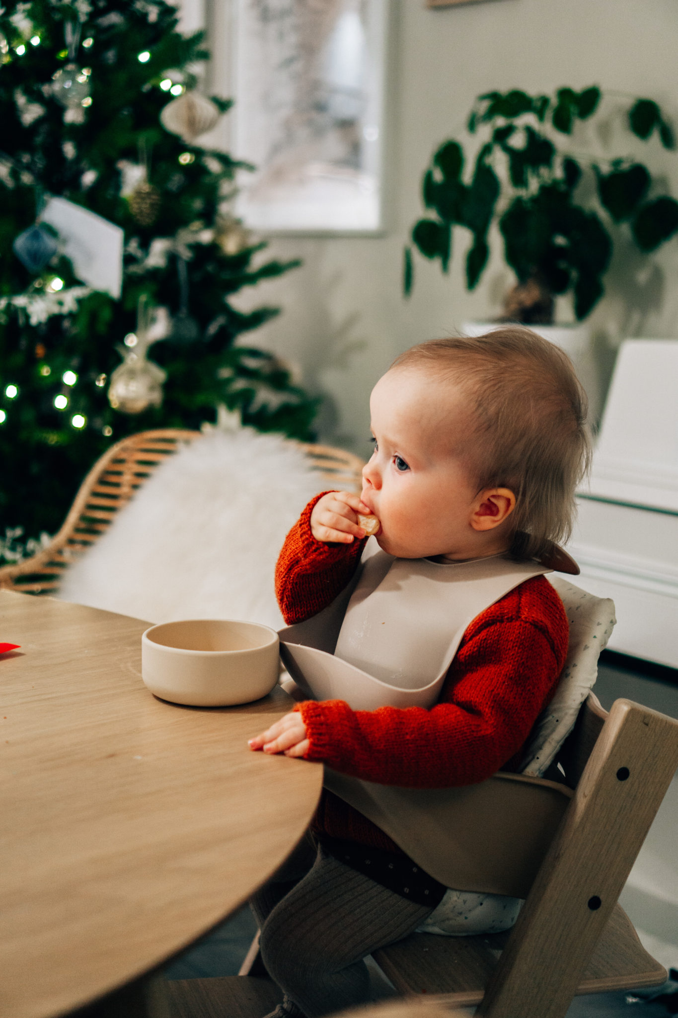 Me käytetään pääsääntöisesti kotona silikonista ruokalappua. Ajattelin ensin, että se on painava ja hankala, mutta itse asiassa se on toiminut aika hyvin! Käytettiin aikaisemmin kankaisia Baby Wallaby ruokalappuja ja itse asiassa edelleen käytetään ja ne ovat meillä hoitolaukussa mukana. Kankainen menee todella pieneen tilaan ja taskuun sujautetaan lusikka mukaan. Sitten vain rullalle ja hoitolaukun sivuun. Silikoninen lappu on kotona käytössä kaikissa ruokailuissa.