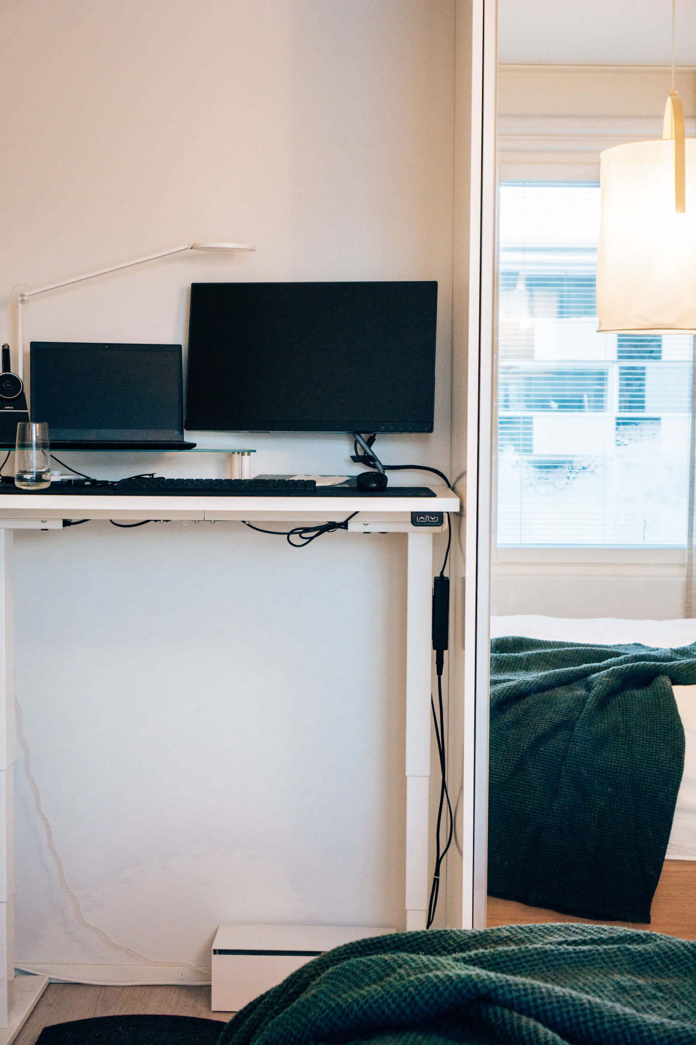 Jouduttiin siirtämään Markuksen työpöytä viritelmä makuuhuoneeseen. Voisipa tämän piilottaa jotenkin!