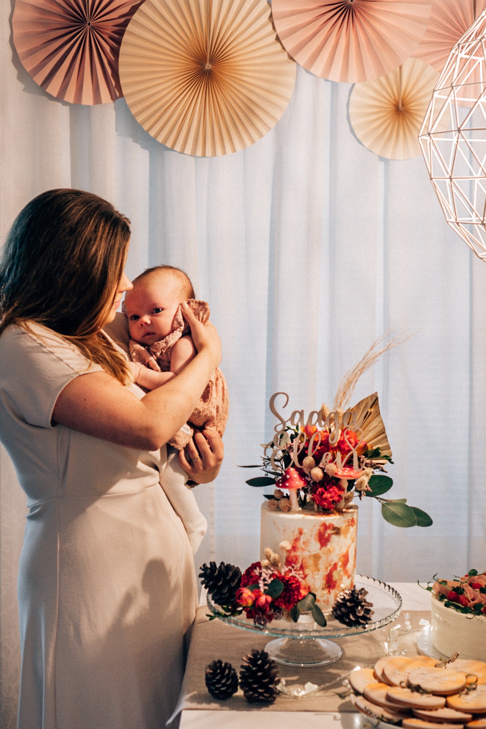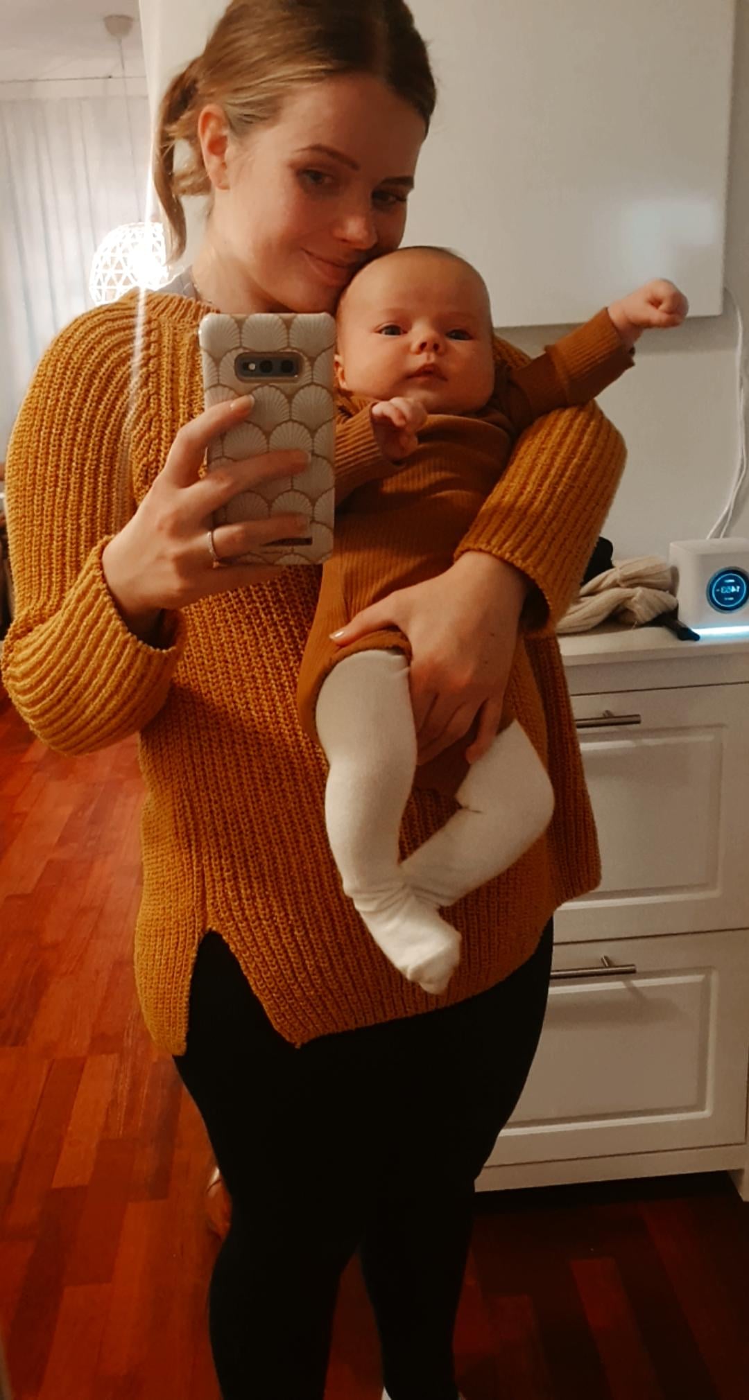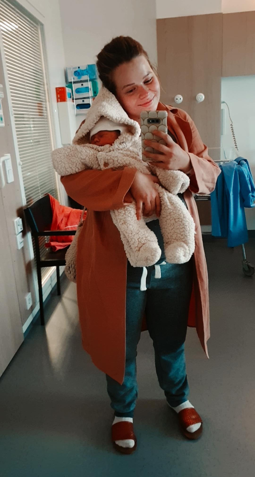 Vietettiin aikalailla aikaa pelkästään vauvakuplassa. Baby blues iski ja kovaa. Sukulaiset ja kummit tuli moikkaamaan ekaa kertaa meidän pikkuista ja muista vaan sen ahdistuksen, joka silloin oli. En ollut yhtään valmis jakamaan tätä lasta vielä kenenkään kanssa. Nämä kuvat on otettu ekana “hyvänä” päivänä, kun ei kaikki enää itkettänyt.