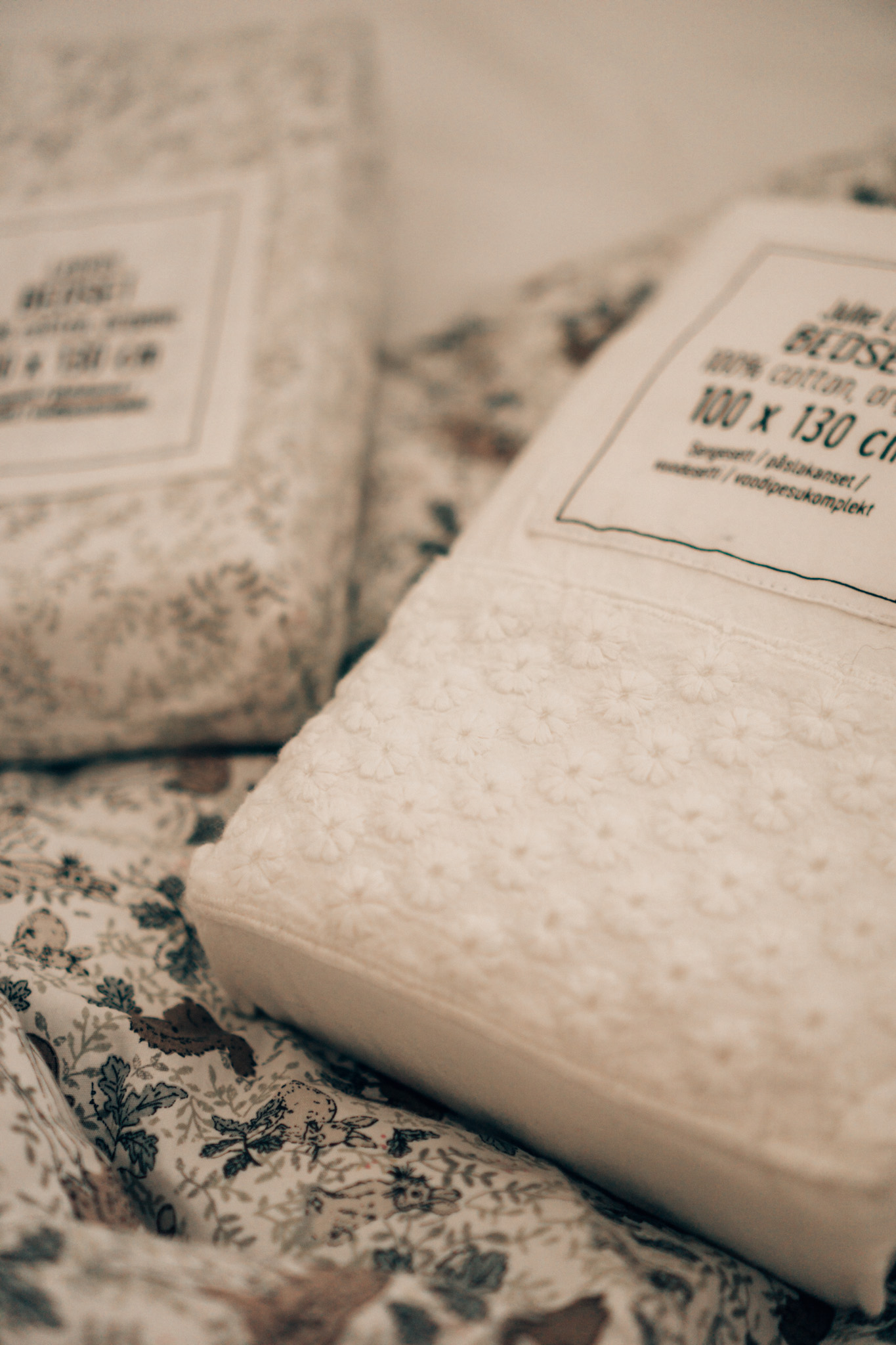 Käytiin ihan ensimmäisenä *Hemtexin alemyynneissä, koska ikkunoissa vilkkui -40% alekyltit. Kaupan kiertämiseen meni n. puolisen tuntia, kun jäin kuolaamaan kaikki mahdolliset alepöydät. Nyt kun muutto on ihan nurkan takana, tekee mieli ostaa kaikkea ihanaa sisustustavaraa. Maltoin kuitenkin mieleni vielä enkä ostanut kauppaa tyhjäksi. ? Saagan pinnis sai kuitenkin kahdet uudet ihanat lakanat, joista onkin kuvat tuossa ylempänä. *Julie Lace vuodevaatesetissä on ihana kohokuvio ja tuo *Leaves pussilakanasetti sopii kuin nakutettu tähän mun eläin/luonto teemaan, jota yritän Saagalle rakentaa. *Kaikki lasten tuotteet on -25% alessa vielä 7.3.21 asti. Pussilakanat on tosi reilut ja menee vuosia. Mua ei oikeastaan haittaa, että nämä on niin isot, koska en myöskään haluaisi olla koko ajan ostamassa isompia ja sängyn jalkapäätyyn peitto on kuitenkin aamulla potkittu. Nämä Hemtexin kuosit on ihan mun lempparit. Voisin ostaa kaikki Saagan nykyiset ja tulevatkin lakanat täältä. Hyllystä löytyi myös muotoon ommeltuja lakanoita sekä löytyi myös patjan ja tyynyjen suojia lapsille.