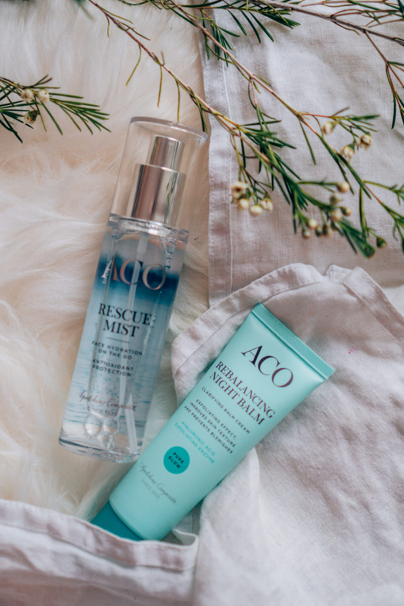 ACO face rescue mist kasvovesi – Hyvin hienojakoinen kasvovesi, joka yllätti! Miellyttävä käyttää vaikka meikkivoiteenkin päälle. Tuoksu on mieto eikä jää tahmaiseksi iholle. Iholle jää kiva mattapinta. Tämä kulkee mulla nykyään mukana laukussa. Kasvomaskin käytön jälkeen tämä on ihan paras pika apu kasvoille. ACO face pure glow rebalancing night balm yövoide – Kevyt yövoide. Juuri sellainen, joka sopii nyt kasvoille. Olisinpa löytänyt tämän jo kesällä! Olin koko kesän käyttämättä yövoidetta sillä kaikki testaamani olivat liian paksuja ja lisäsivät iholle epäpuhtauksia. Talvella tämä tulee olemaan liian kevyt, kun kasvot huutavat kaikkea mahdollista kosteutta joka löytyy, mutta nyt aivan täydellinen. Mieto aika ihana tuoksu ja miellyttävän silkkinen levittää.