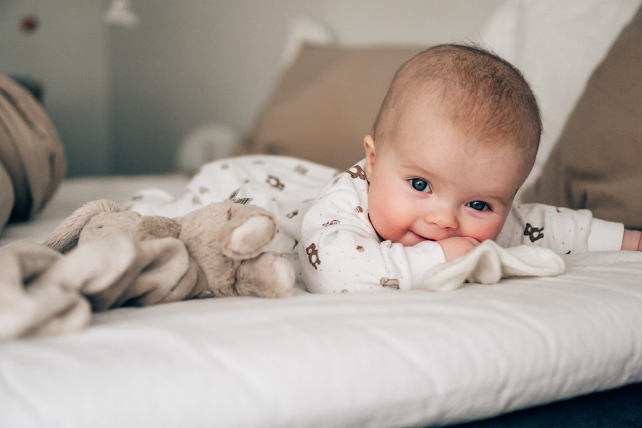 Nykyään en tiedä mitään parempaa, kuin sen, että Saaga herää jokeltamaan jo ennen kello seitsemää ja pinniksestä alkaa kuulumaan pieniä potkujen ääniä, kun jalat heitetään kippurasta suoraksi sängylle. Välillä kiljutaan kovaakin ja testataan kuinka paljon sitä ääntä oikein lähtee. Raotan hieman silmiäni ja huomaan, että aurinko alkaa juuri nousemaan, joten niin nousee meidän pieni aurinko sieltä pinnasängystäkin. Katsotaan hymyillen Markuksen kanssa toisiamme ja mietitään vaan molemmat itsekseen, kuinka onnellinen sitä voikaan tällä hetkellä olla ja ehkä vähän sitäkin, että uni vielä maistuisi. ? Nostan Saagan meidän väliin jokeltelemaan ja molemmat vielä hetki ummistetaan silmät ja kuunnellaan Saagan hiljaista juttelua omille käsille ja varpaille.