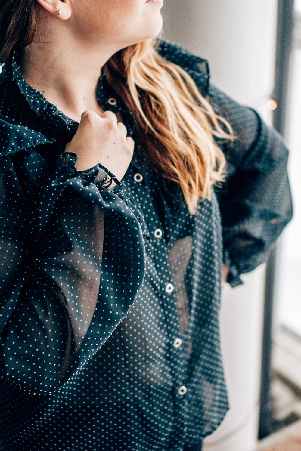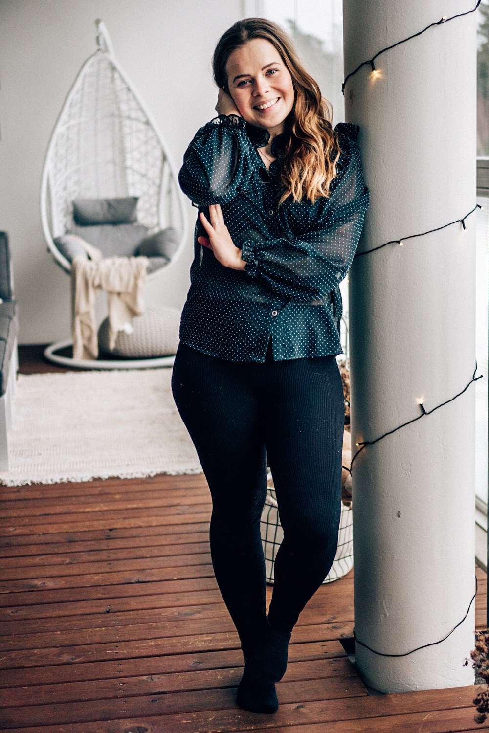 Oon kyllä ihan rakastunut tähän Zarasta ostettuun läpikuultavaan paitaan. En löytänyt tätä enää Zaran verkkosivuilta, mutta saman tyylisiä paitoja löytyy paljon. Tän kaverina tykkään käyttää perus mustia leggareita. Nämä Zaran legginssit jäi mulle jo raskausaikana kovastikin käytetyksi vaatteeksi ja tilasinkin muutamat uudet samanlaiset raskauden jälkeen vanhojen venyneiden tilalle. Kotona on kiva välillä käyttää muutakin kuin verkkareita, mutta silti vaatteiden täytyy olla mukavat päällä.
