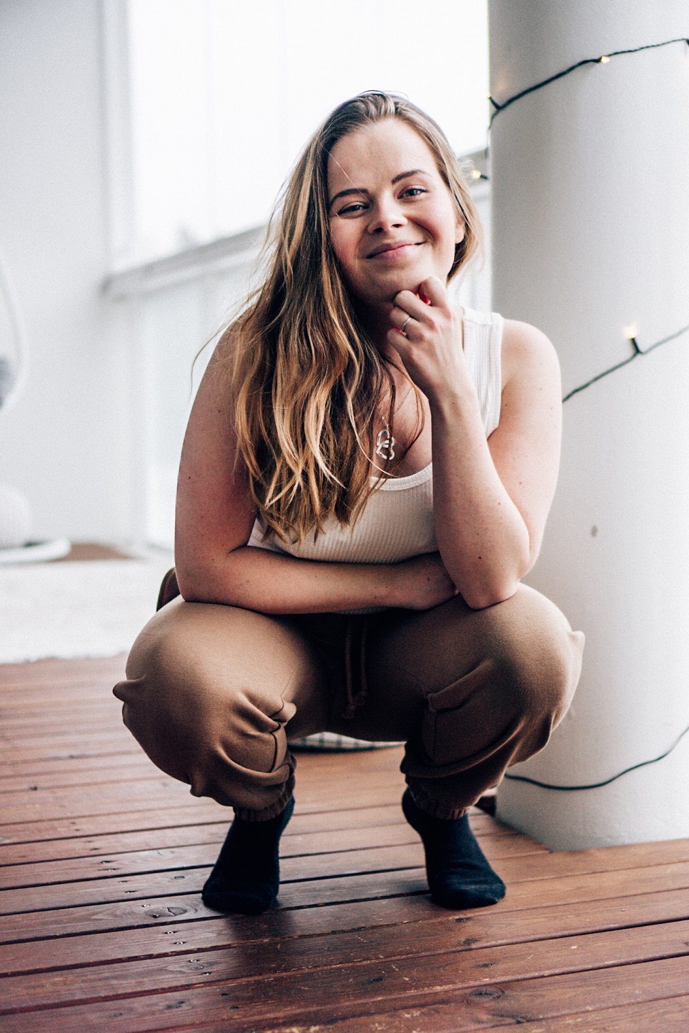 Mun kaikista mukavimmat kotoiluvaatteet eli ns. Netflix look sohvalle sisältää H&M:stä ostetut joggersit ja * Lindexin perus valkoisen topin. Olen jo pitkään tykännyt tällaisesta ruskean ja valkoisen yhdistämisestä ja kyllä muuten toimii! Nämä päällä kyllä kehtaisin lähteä vaikka kaupungillekin.