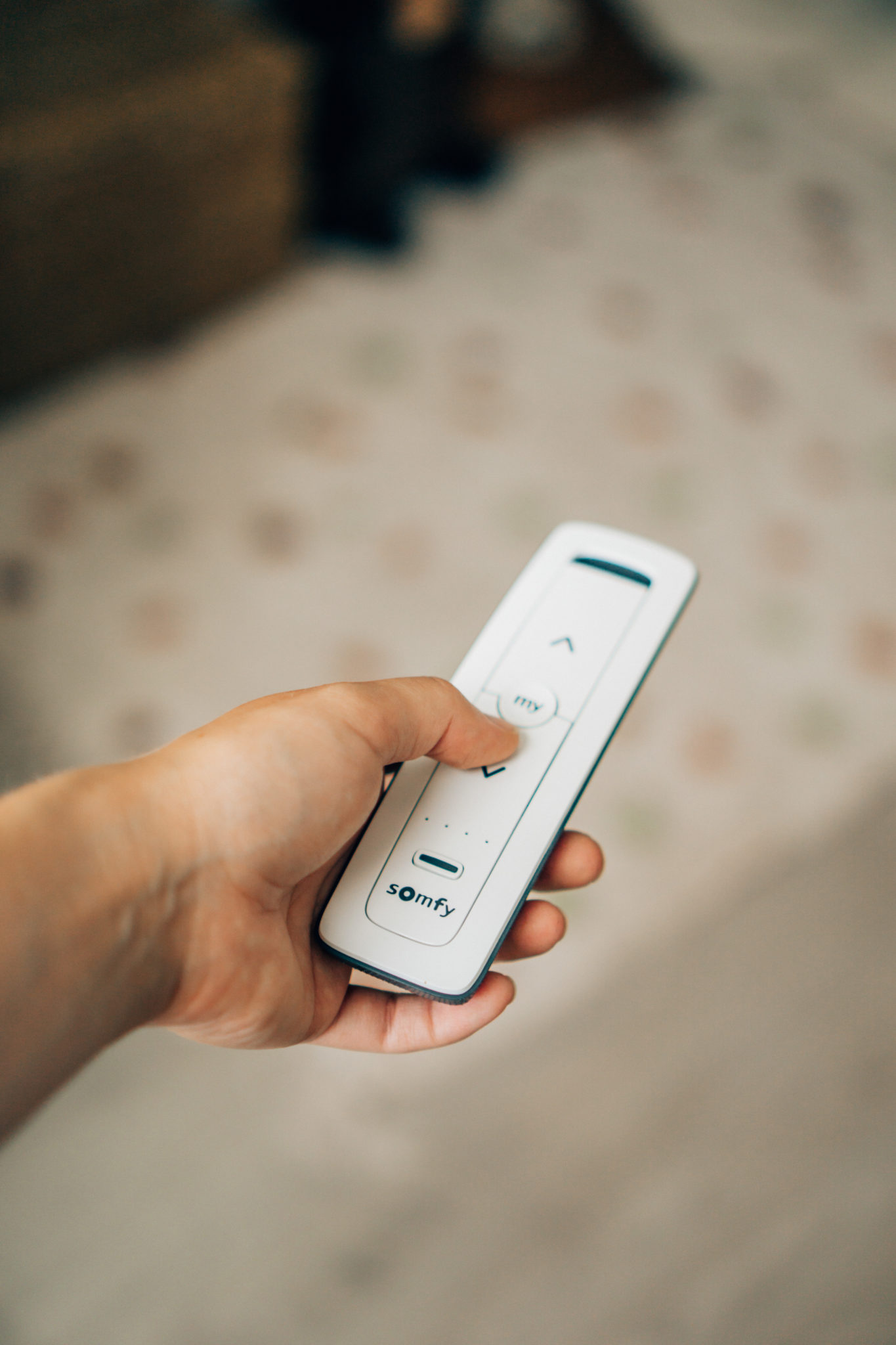 Verhon takaisin saaminen täysin suoraan tuntui ihan mahdottomalta tehtävältä ja vaikka kuinka sitä yritettiin, ei se rullaantunut täysin suoraan. Tämän episodin jälkeen verho alkoi valahtaa entistä enemmän. Jokaisella kaukosäätimen painalluksella verho jäi aina hieman alemmas. Kaukosäätimessä on siis nappi, josta verho itsekseen vetää itsensä ylös ja alas. Nyt, kun verho valuu painalluksilla, roikkuu verho jo lähestulkoon lattialla ala-asennossa ja vain puolessa välissä ikkunaa yläasennossa. Käsin rullaamalla saa verhon ylös, kun nousee tikapuille, mutta verho on taas vinossa.